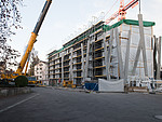 Das wunderschöne Wohngebäude mit 13 Wohnungen ist einzigartig. Es besteht aus zwei unabhängigen Baukörpern. Die im Erdreich liegende Einstellhalle mit den selbstständig stehenden Laubengängen und das zentral darin stehende Wohnhaus in Holzelementbauweise. Unsere Aufgabe war es, die Rohbauarbeiten inklusive die 4 Stockwerke frei stehenden Laubengänge zu planen und deren Realisierung zu überwachen.